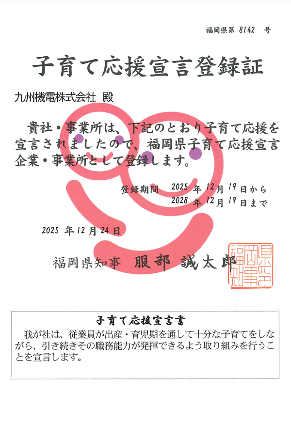 九州機電は「子育て応援宣言」登録企業です。